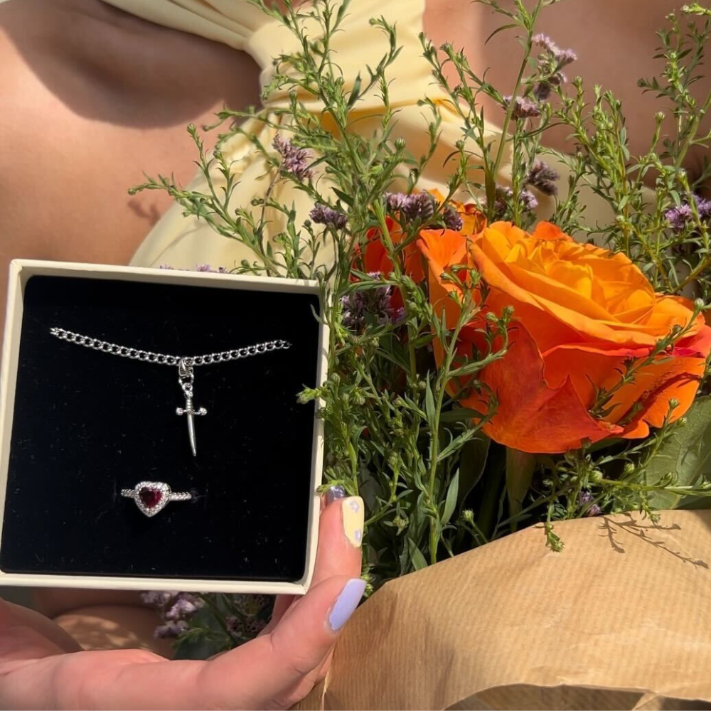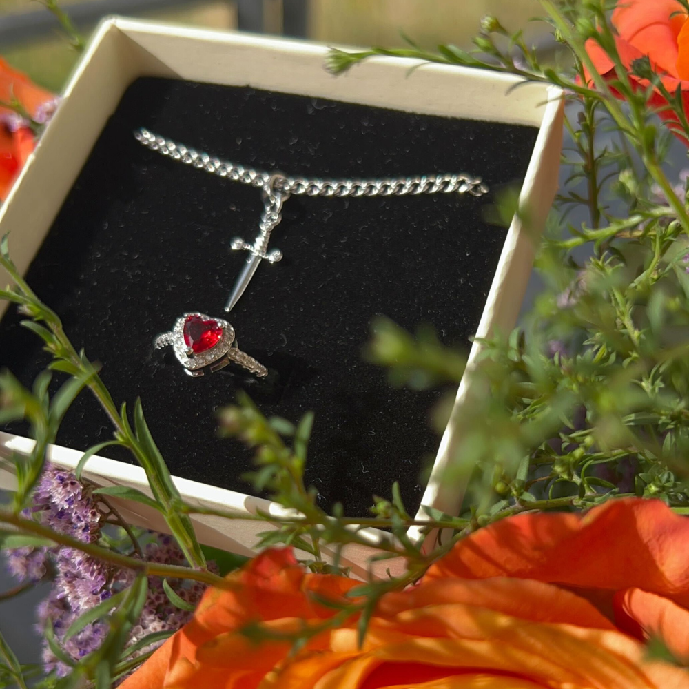 Da, narukvica sa mačem i prsten sa srcem dolaze u paru – dizajnirani su da se savršeno dopunjuju. Dobijate kompletan set spreman za poklon, bez potrebe za dodatnim kupovinama.