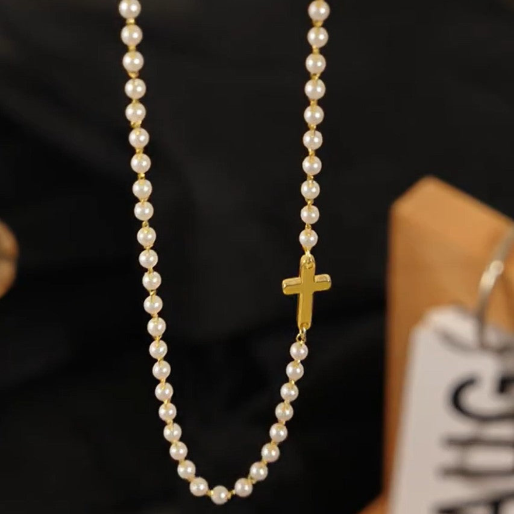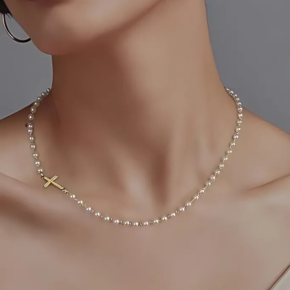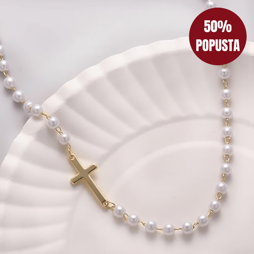 Ogrlica Nebeski Biser spaja večnu eleganciju bisera sa snažnim značenjem krsta u njenom središtu. Svaki biser donosi notu nežnosti i otmenosti, dok krst dodaje simboliku vere, snage i dostojanstva. Nije samo nakit, već poruka koju nosiš – o svojoj unutrašnjoj lepoti, postojanosti i vrednostima.